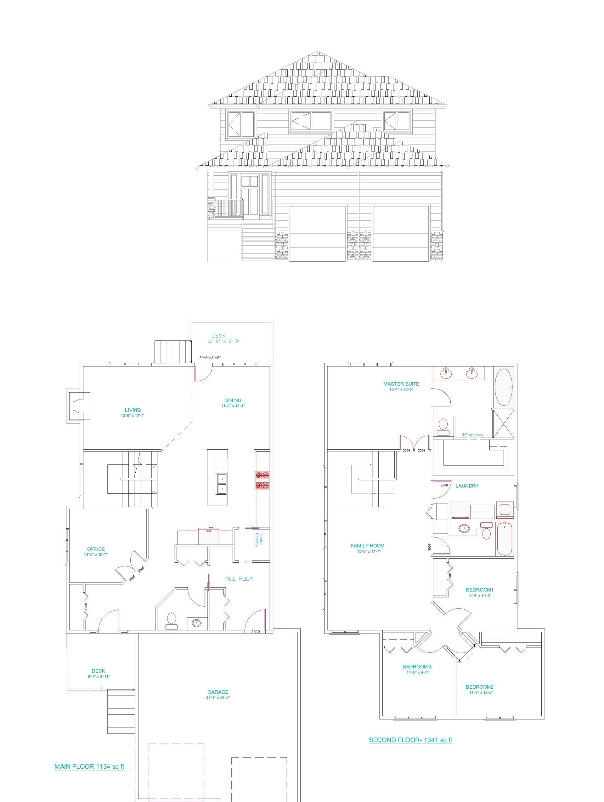 Two storey house plan. Main floor 1134 sq ft. Second floor 1341 sq ft.